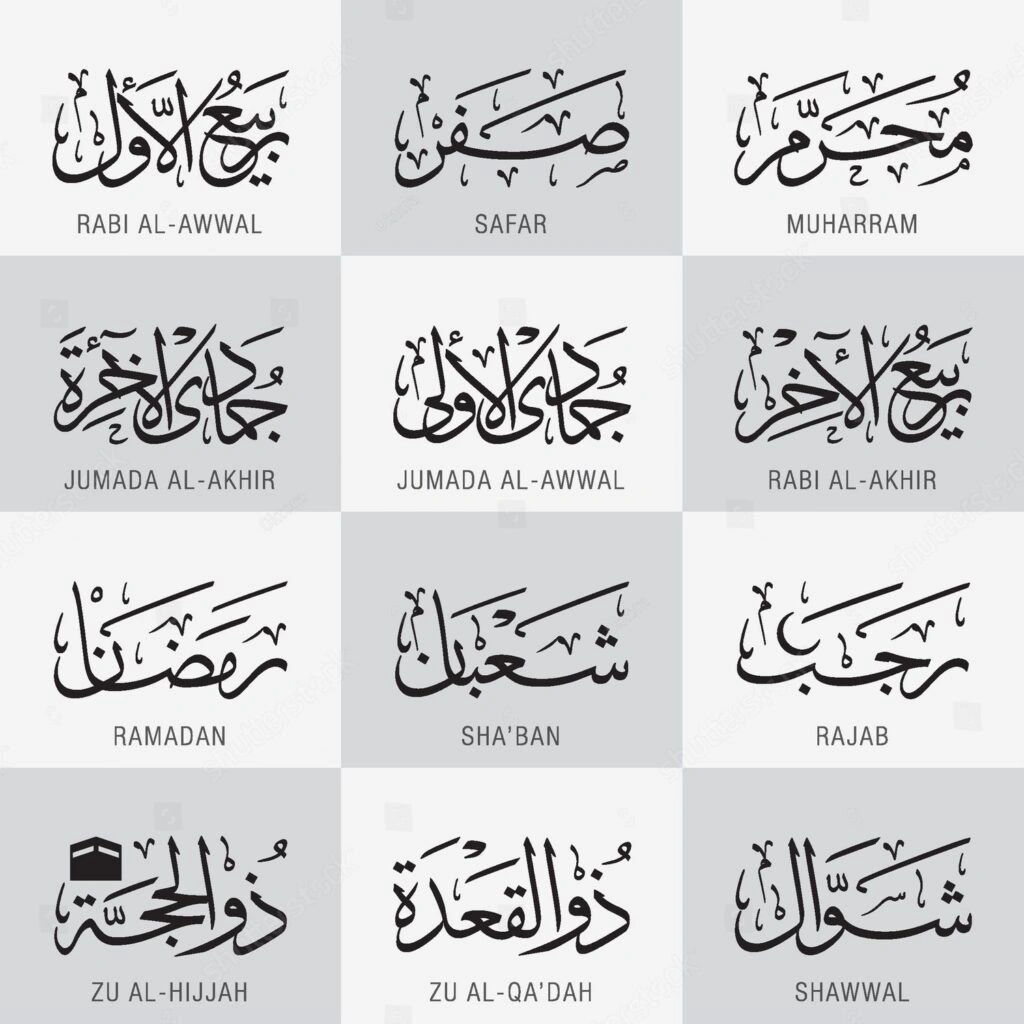 The Names of the months in the Hijri Calendar or Islamic Calendar: